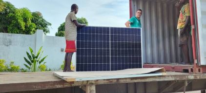 Finalmente il container è stato sbloccato dal porto ed il materiale solare scaricato a Menkao (foto in allegato) il venerdi Santo.