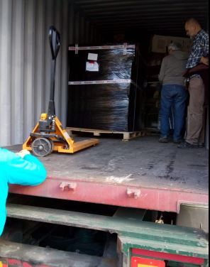 Come vi avevo annunciato il venerdi’ santo il container è stato scaricato presso la nostra casa comunitaria di Kinshasa e subito dopo Pasqua è giunto sul sito a Menkao.