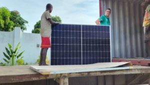 Gli operai del Centro Professionale St Joseph si sono subito messi al lavoro per installare i pannelli sulla struttura già preparata e successivamente stabilire il circuito elettrico che raccorda i pannelli con il locale tecnico dove sarà installato l’inverter.