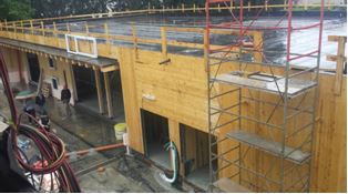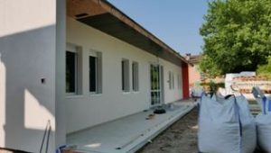 Nei mesi estivi ci sono pervenute le foto dei lavori: la conferma dell’appalto, la posa della piattaforma dopo la demolizione del vecchio edificio danneggiato, la costruzione delle struttura in legno, il salone interno, la copertura, il tinteggiamento delle pareti e l’interno di un’aula.