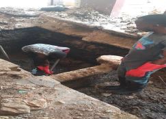 La prima difficoltà incontrata è quella logistica. Ciò riguarda la pulizia e lo smaltimento dei rifiuti nelle grondaie. Era assolutamente necessario avere una pompa dell’acqua elettrica per evacuare e pulire le grondaie, altrimenti i lavori di costruzione non sarebbero stati possibili. Abbiamo avuto più di una settimana per smaltire completamente la spazzatura e liberare lo spazio per iniziare la costruzione.