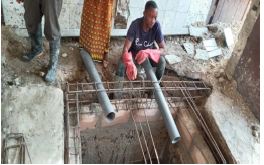 Sono stati realizzati gli impianti idraulici, con ricostruzione e riparazione delle pareti demolite e nuove colate di cemento  per riempire i buchi e rifare gli scarichi.