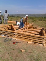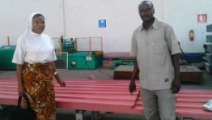 Con la prima rata si è acquistato il cemento per la costruzione della veranda, il legno e le lamiere per la copertura del tetto. Nella foto la suora sta acquistando le lamiere.