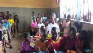 Per prima cosa abbiamo comprato gli articoli per cucinare e servire, i cucchiai, le tazze e i cestini per asciugare. Per l’acquisto degli alimenti, effettuiamo acquisti all’ingrosso su articoli che siano di lunga durata o che non risentono del clima caldo come nel caso di Mamfe. Per gli articoli deperibili come pesce, frutta, carote, uova, spezie verdi acquistiamo giornalmente secondo necessità poiché si deteriorano a causa del clima caldo e non possono essere conservati in frigorifero per mancanza di elettricità. Le suore e le maestre partecipano nel servire i bambini. Abbiamo assistito a grandi risultati sui bambini poiché sono più concentrati nei loro studi, non si preoccupano più di cosa mangeranno né vanno a mendicare come prima. È migliorata la debolezza del corpo e gli attacchi di malaria che è il più delle volte conseguenza di una cattiva alimentazione con il caldo.